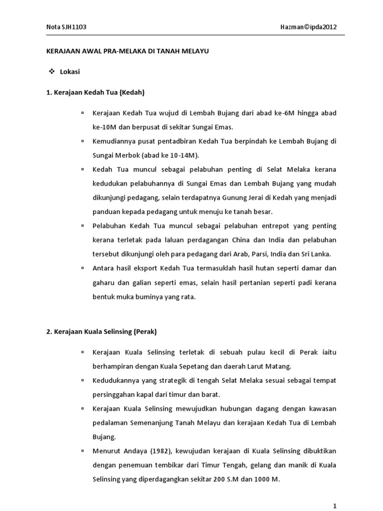 Nota Sjh1103 Kerajaan Awal Srivijaya Melaka Pdf